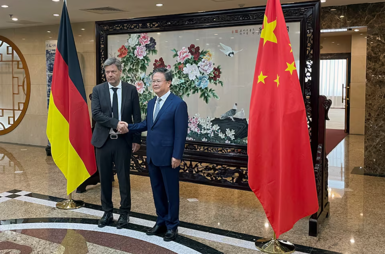 国副总理兼经济和气候保护部部长罗伯特·哈贝克与中国国家发改委主任郑栅洁。图片来源:REUTERS。 |