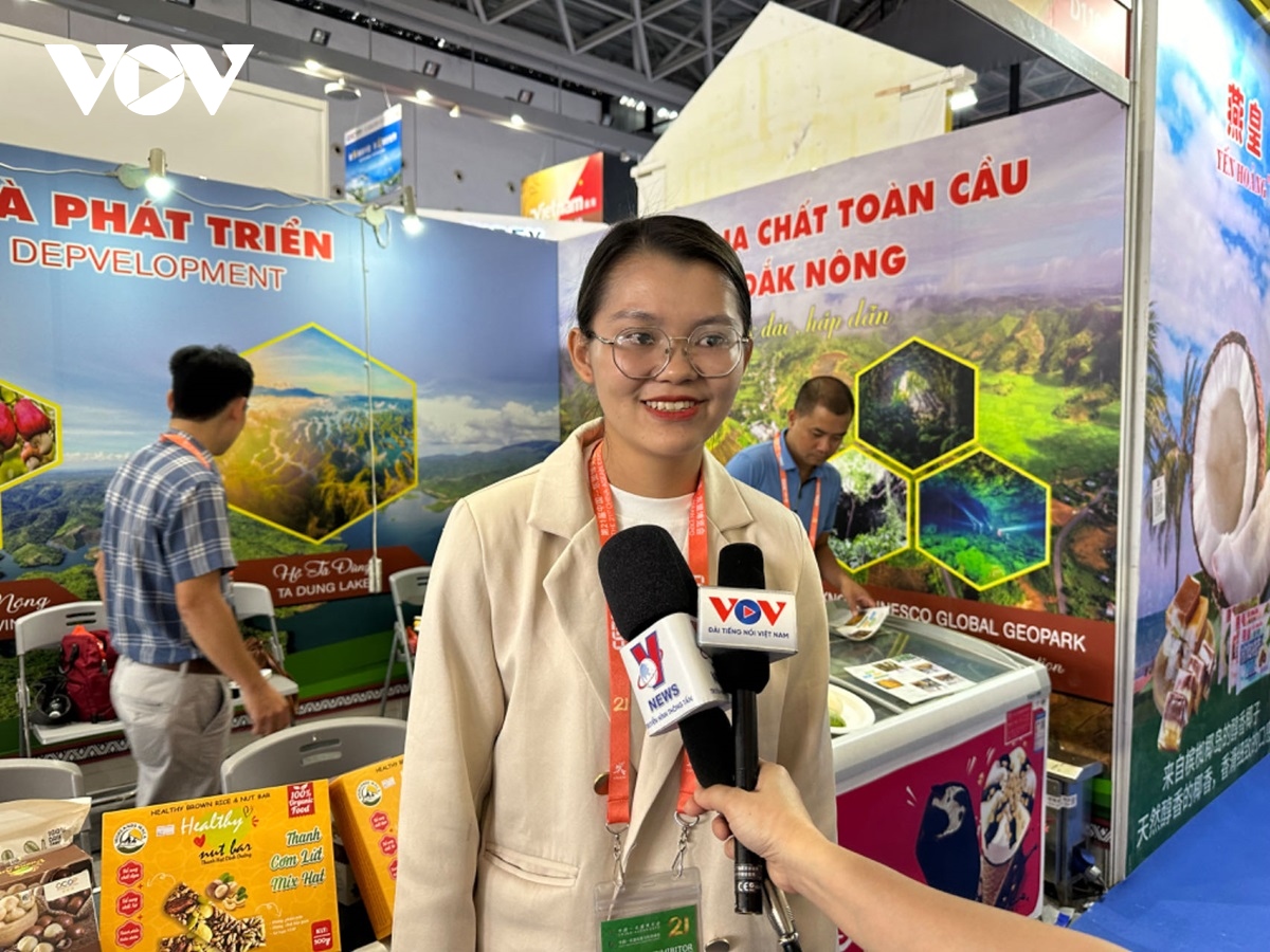 TH集团国际业务总监黄青水: 今年,我们不仅带来了已经在中国市场上推广和销售的产品,如纯鲜奶、黄油、酸奶和奶酪等乳制品,还推广介绍了一些具有越南地方特色的新产品,如果干、草本茶和水果茶。这些产品结合了现代技术和越南具有地方特色的传统水果,如李子、香蕉、荔枝和桃子”。