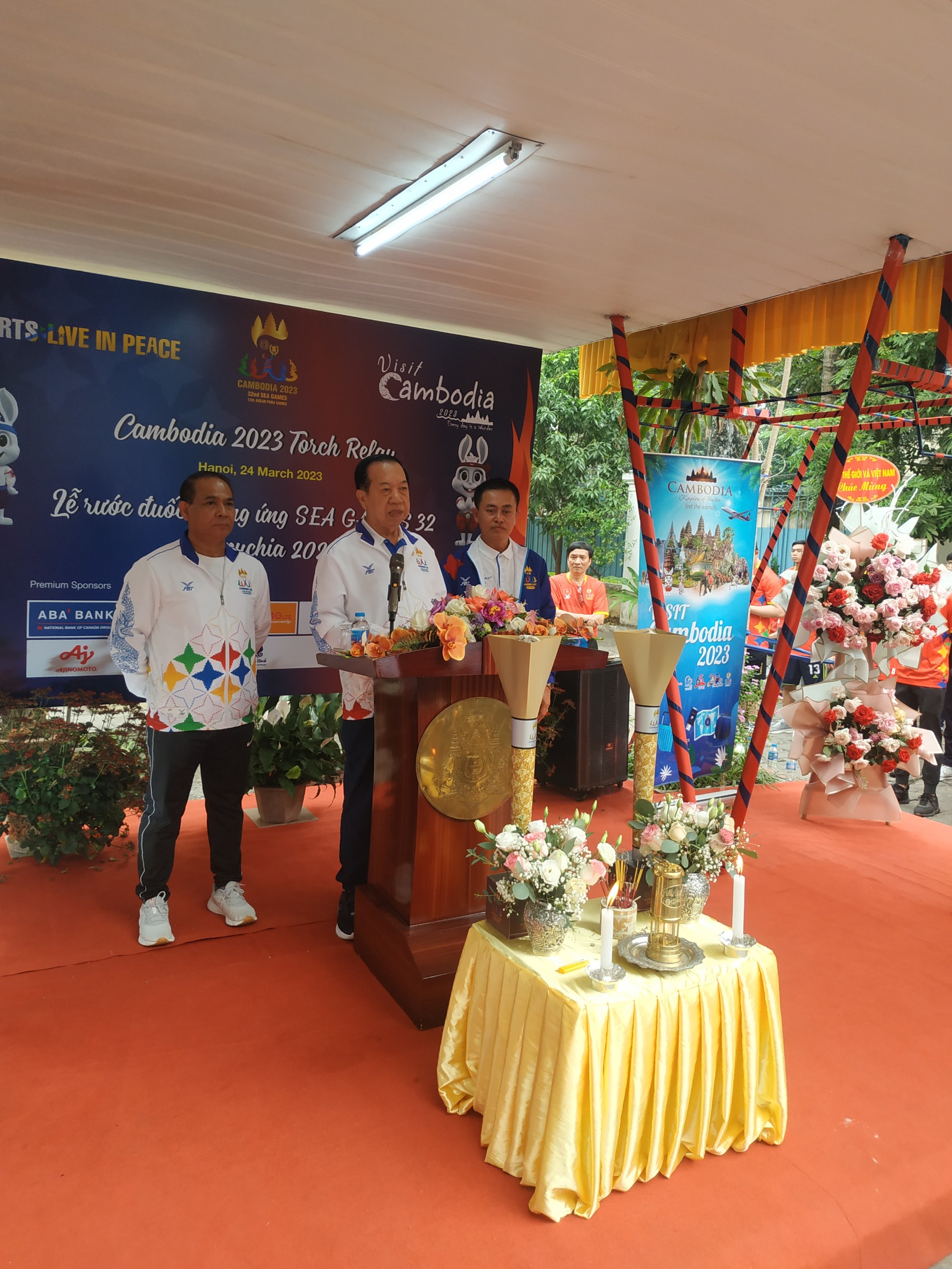 越南体育总局副局长、越南奥林匹克委员会副主席邓何越表示:“越南是继东道主柬埔寨后火炬接力的第一站。我们为此感动荣幸。活动上,曾多次在东运会夺冠的越南田径运动员阮氏玄与其他200名运动员在还剑湖边高举火炬接力跑。借此机会,我们希望强调,越南愿与柬埔寨并肩前行,为第32届东南亚运动会成功举办给予最大支持和付出最大努力。”