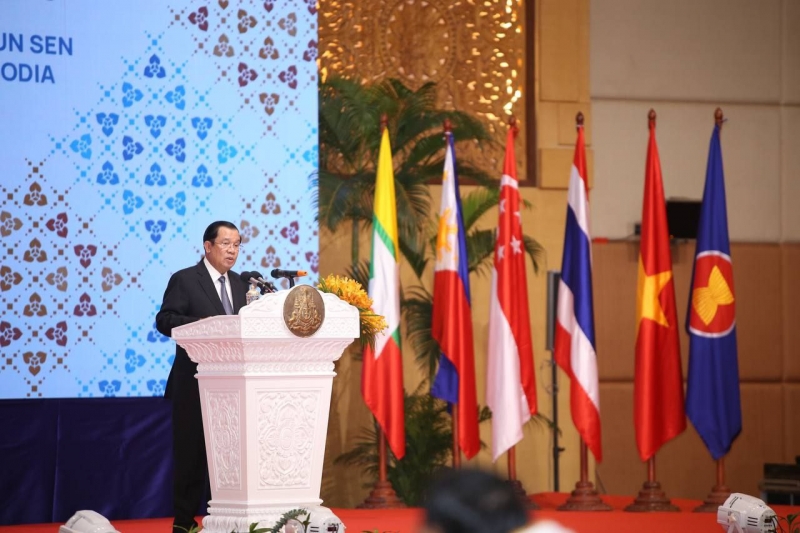 柬埔寨首相洪森在会议上致开幕辞时回顾东盟55年发展历程,同时表示,在地区乃至世界形势复杂多变的背景下,东盟比任何时候更应加强团结,发挥中心作用,努力建设“多样性中的统一体”、团结、包容、合作的东盟共同体。为了保持合作态势,洪森建议东盟各国合作应对气候变化及环境退化,考虑制定一份绿色发展协议,同时尽可能多地挖掘和利用区域全面经济伙伴关系协定》(RCEP)的潜力和优势。