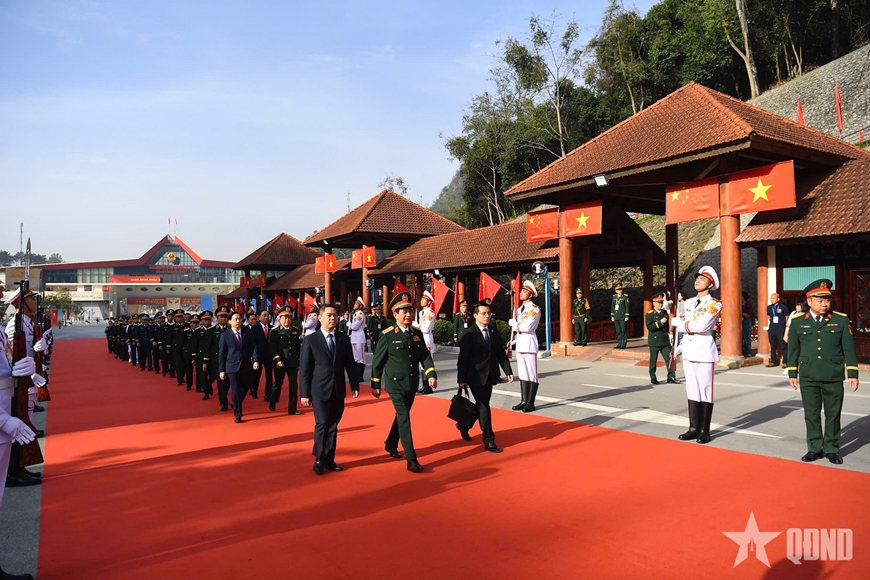4月16日,越南国防部长潘文江大将和越南国防部高级代表团在友谊国际口岸1116号界碑举行敬礼和涂红仪式,标志着第九届越中边境国防友好交流活动的开始。