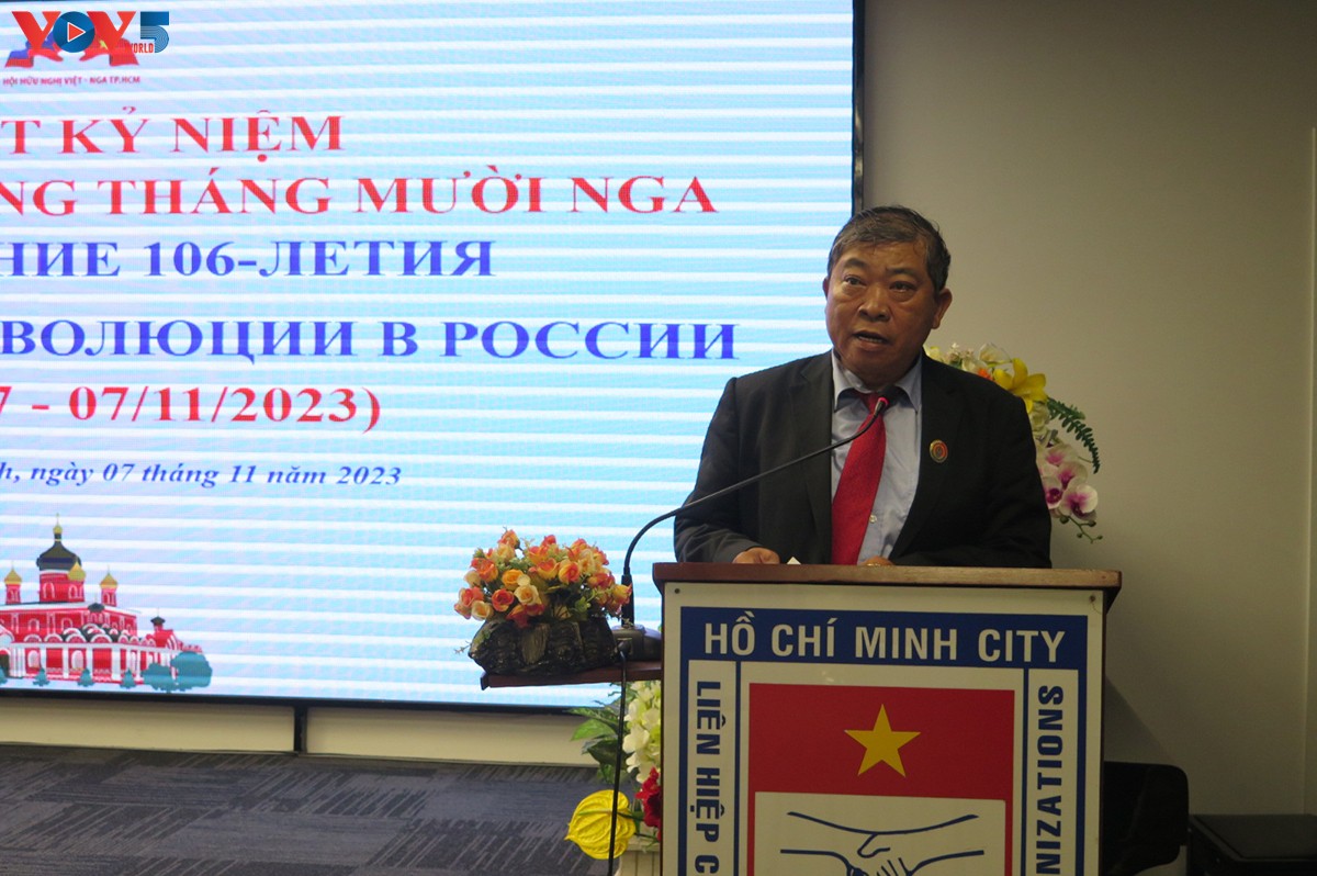 “对越南革命事业来说,十月革命仍然是巨大的动力源泉,使进步人类跨入进步,和谐与发展的历史新阶段。胡志明市友协将竭尽所能维护和发展两国人民的美好传统友谊”。胡志明市越俄友协主席黄明仁说。