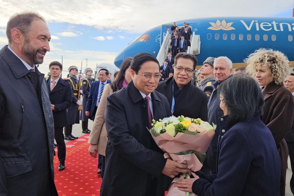 (VOVWORLD) - 当地时间10月23日,越南政府总理范明政及越南高级代表团抵达俄罗斯鞑靼斯坦共和国喀山国际机场,开始应俄罗斯联邦总统、金砖国家轮值主席普京的邀请,出席2024年金砖国家领导人会晤行程。