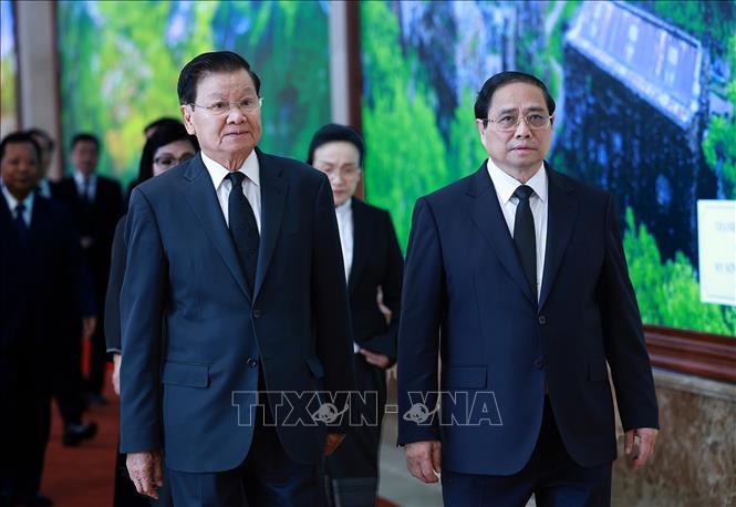 (VOVWORLD) - 越南政府总理范明政7月26日下午在河内会见前来出席阮富仲总书记国葬仪式的老挝人民革命党中央总书记、国家主席通伦·西苏里(Thongloun Sisoulith)和夫人。