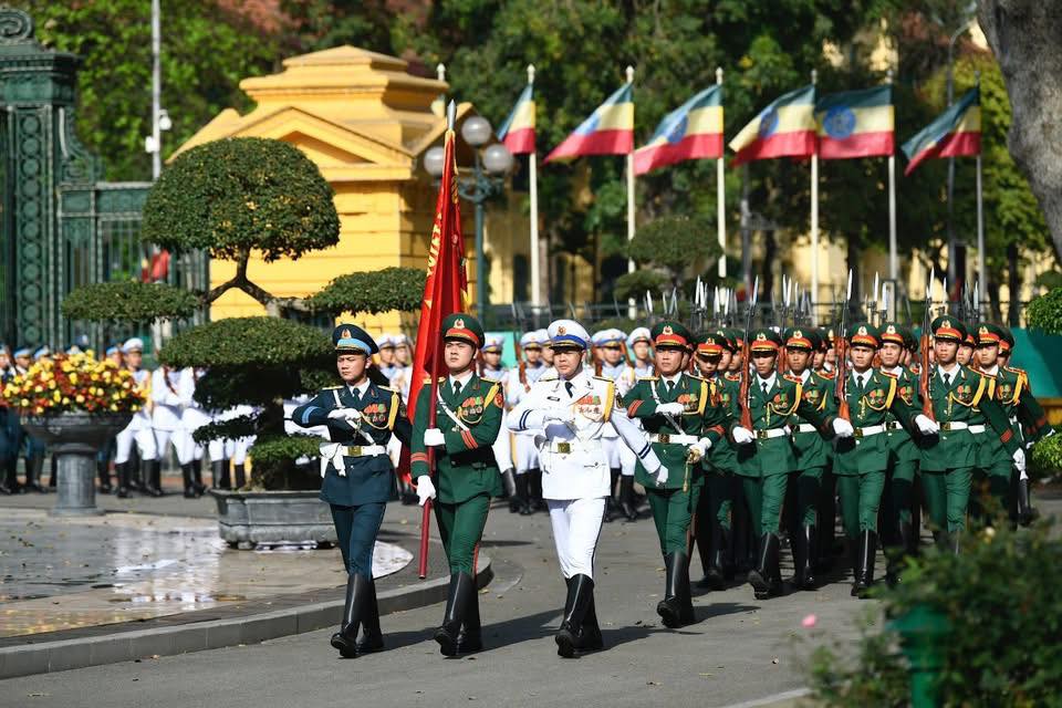 (VOVWORLD) -4月15日下午,在主席府,越南政府总理范明政主持仪式,欢迎埃塞俄比亚总理阿比·艾哈迈德·阿里及夫人正式访越,并出席于4月14日至17日举行的第四届全球绿色增长与2030年全球目标伙伴关系(P4G)峰会。这是自1976年越埃建交以来,埃塞俄比亚高级领导人首次访问越南,也是两国时隔7年再次进行高级代表团访问。