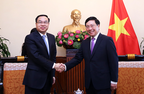 越南政府副总理兼外交部长范平明8月31日会见来访的中国重庆市市长唐良智。范平明强调,越南重视加强与包括重庆市在内的中国各地方的互利合作;建议重庆市加强与越南各地方的友好交流和经济社会发展经验分享,协助越南改善、升级边境地区基础设施系统,加强进口越南的优势商品,积极推动两国双边贸易均衡与可持续发展。