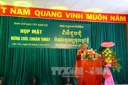 阮善仁表示: “西南部高棉族同胞正准备欢度自己的传统新年,每年,当地政府都和同胞们一道准备过年。今年,我代表党、国家和祖国阵线到芹苴市与当地同胞欢度新年,并代表9000多万越南人民向西南部同胞祝贺新年”。(完)