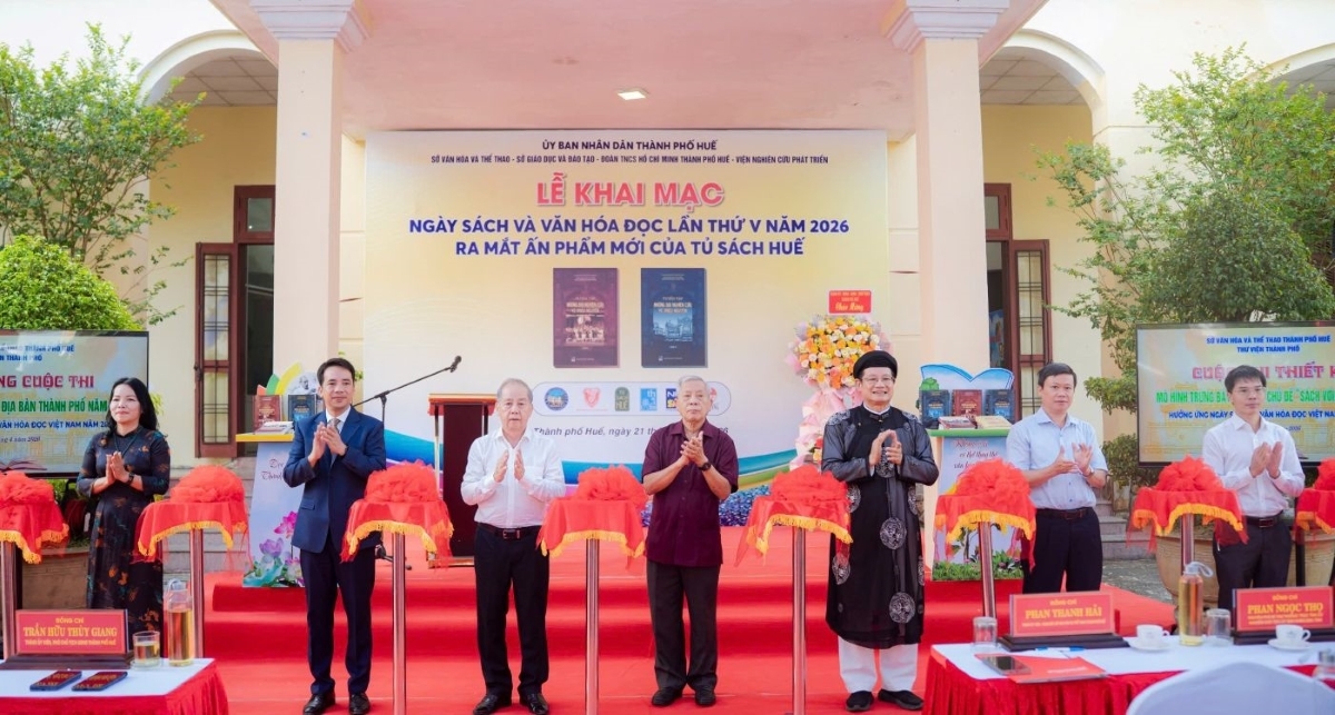 与此同时,顺化市综合图书馆和市文化体育局于同日上午联合举办第五届越南图书与阅读文化日开幕式。本届活动以"图书——知识——国家发展渴望"为主题,现场启动了2026年"阅读文化大使"评选活动,以及以"图书与顺化遗产"为主题的文献陈列模型设计大赛。活动期间,主办方还隆重推出《阮朝研究论文集》(上下两册),全书逾2700页,汇集165篇代表性学术成果,有助于深刻阐明阮朝的历史价值,进一步确立顺化作为独特文化历史中心的重要地位。