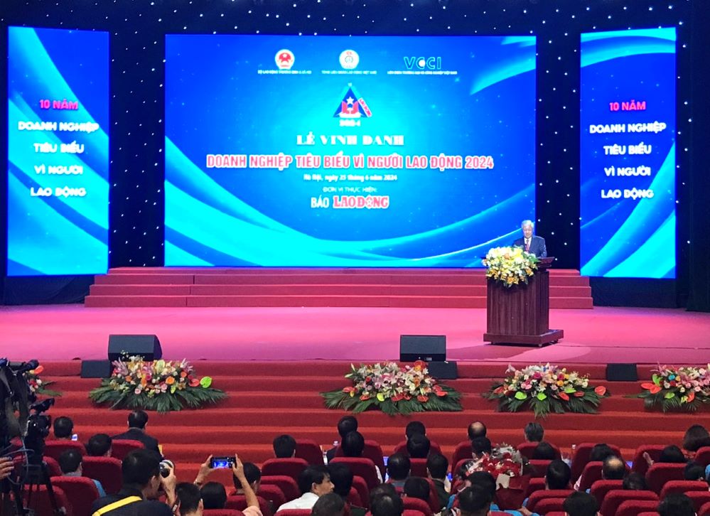 由越南劳动总联合会与劳动荣军社会部、越南工商联合会和劳动报联合举办的“2024年关心劳动者的模范企业"表彰活动昨晚在河内举行。67家模范企业获得表彰。