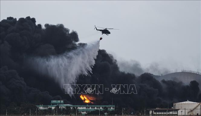 此前,古巴革命空军三架飞机9日从马坦萨斯湾运送约2500升水,为油库降温。经数小时大火后倒塌的三个油罐废墟上,浓烟从前几天的黑色变成了灰色。多架无人机也参与了空中消防行动。到目前为止,古巴卫生官员尚未发布向西扩散的烟雾对人体健康的影响报告。