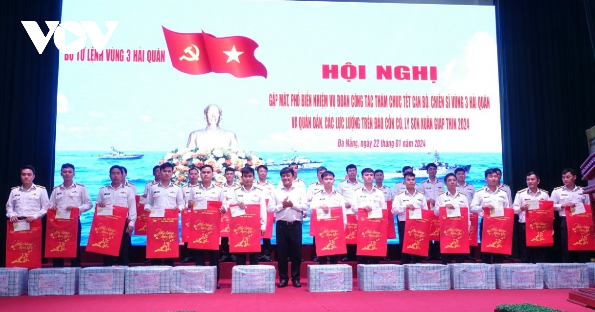 (VOVWORLD) - 越南海军第三区司令部1月22日在岘港市举行仪式,欢送工作代表团启程前往广治省昏果岛(Cồn Cỏ)和广义省李山岛(Lý Sơn),探望驻岛官兵及岛上居民,赠送年礼并致以新年祝福。
