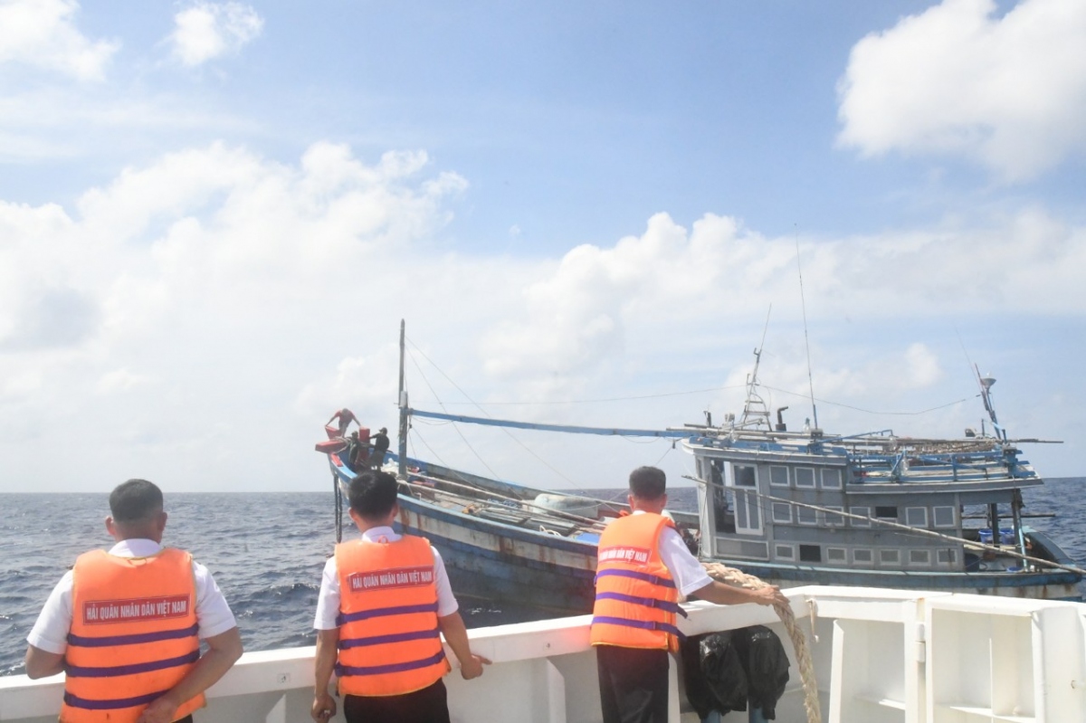 KH98246TS号是庆和省渔船,主要从事金枪鱼捕捞,船上有船长和3名船员。2月18日下午,这艘渔船发动机发生故障,船上人员无法修理,船在海上漂游,船长即发信号,请求职能部门帮助。(完)