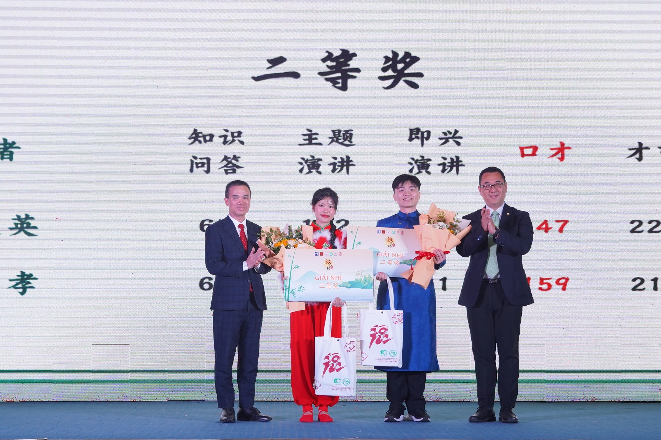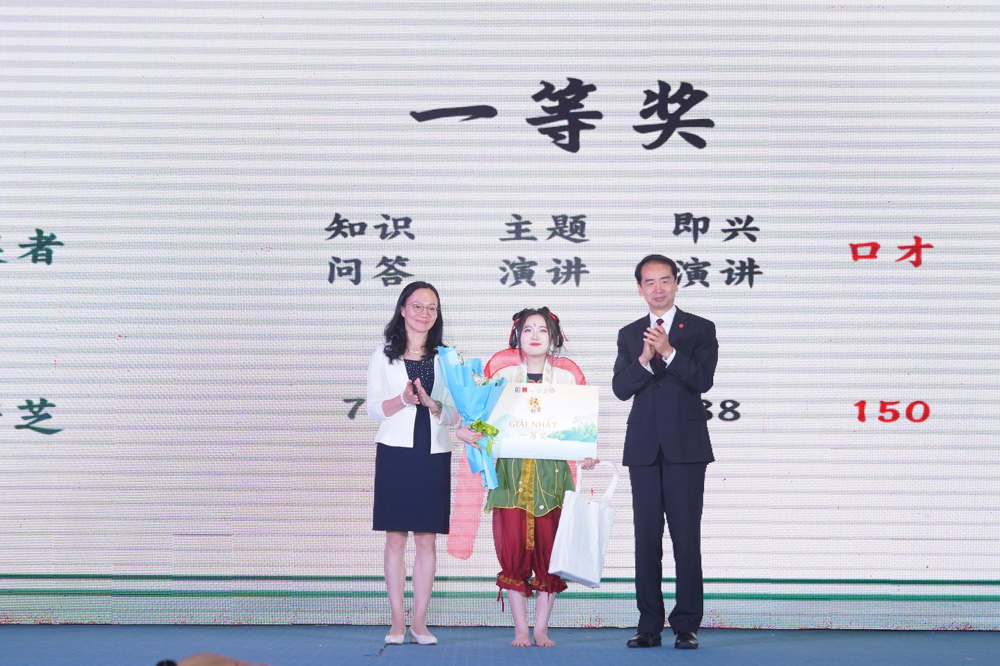 经过激烈角逐,外贸大学的谭芳芝获得一等奖、最佳口才奖。河内国家大学下属外国语大学的两名选手阮氏莲英和邓黄明孝荣获二等奖。邓黄明孝还获得了最佳才艺奖。