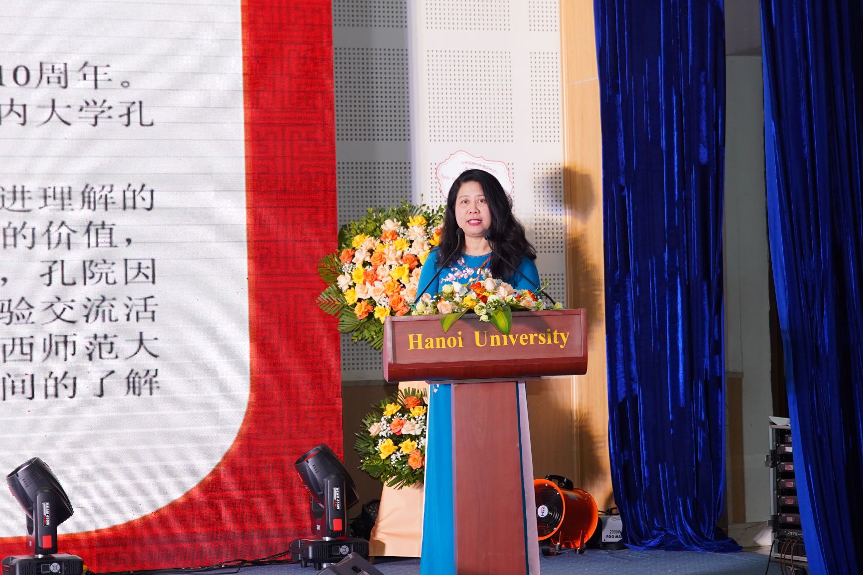阮氏菊芳女士表示,十年来,河内孔子学院因地制宜开展了中文课程教学、中文教师培训、中文水平考试(HSK、HSKK)考点建设升级等工作,连续五年荣获HSK全球优秀考点称号。孔院还多次举办越中文化体验交流活动,吸引了数万名学生、大学生参与,为增进越中两国人民之间的了解和友谊发挥了重要的桥梁纽带作用。