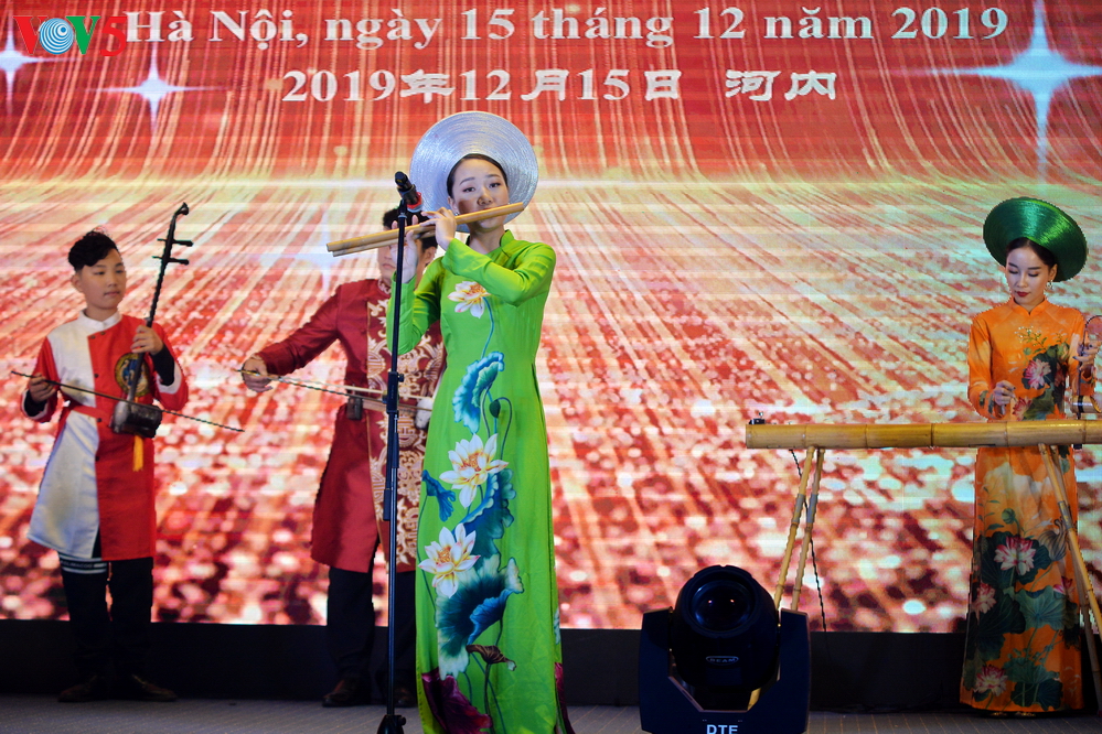 随后,出席庆典的代表共同欣赏由越中两国学生、艺术家表演的极具两国文化特色的艺术节目,并留下了深刻印象。