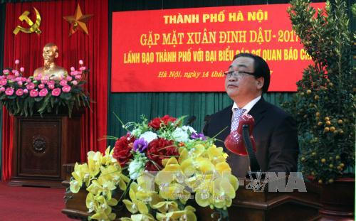 (VOVworld)- 值2017年丁酉春节即将来临之际,河内市委、市人民议会、市人民委员会、市祖国阵线委员会1月14日下午在河内举行与中央和河内新闻媒体领导、记者和编辑见面会。