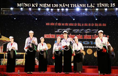 (VOVworld)-2016年第2次芒族铜钲艺术节16日在和平省举行。这是庆祝和平省成立130周年暨和平省重新建省25周年的活动。本次活动共有来自和平省11个县市的300名艺人参加。