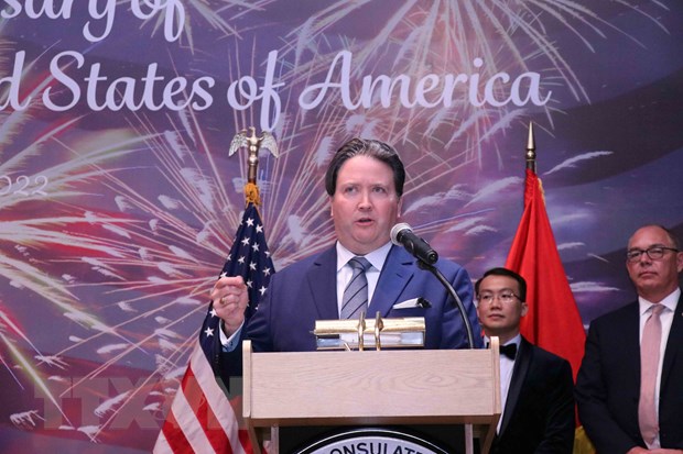 武文欢祝贺美国国庆,高度赞赏美国的发展成就,表示胡志明市还有很多需要学习的地方,特别是在越南经济结构朝着绿色和可持续发展方向重组的背景下。胡志明市已确定高科技、数字化转型、可再生能源等领域是胡志明市与美国伙伴的重点合作内容。胡志明市将继续关注并为包括美国企业在内的在该市投资兴业的外国企业创造便利条件。