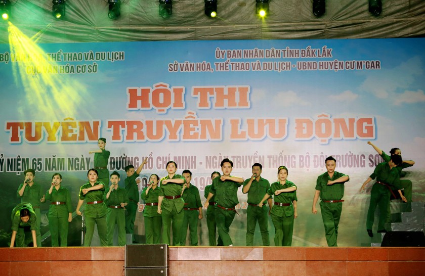 比赛由基层文化局与胡志明小道沿线省市配合举行。主题为“续写神圣小道传奇”的比赛分为两个部分。义安、广宁、永福、富安、金瓯、胡志明市等6省市参赛流动宣传队给观众带来了精彩的歌舞及豪迈的音乐。