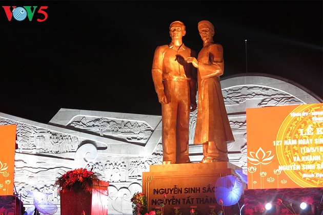 阮生色-阮必成高10.8米,铜制,立在高4.7米的基座上。这座塑像是家庭、父子及祖国家乡血肉之情的美好象征。