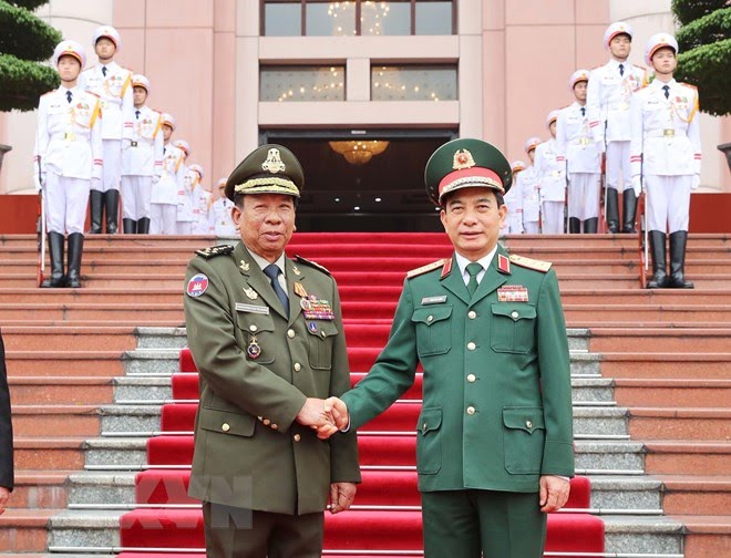 欢迎仪式结束后,潘文江与迪班举行会谈。双方一致评价,2022年对两国关系具有特别重要的意义,被两国领导人确定为“越柬友好年。两国国防部陆续开展近30项具有重要意义的活动。