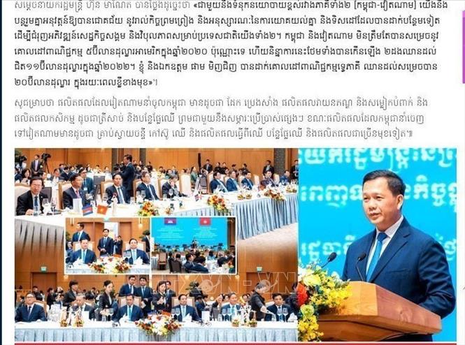 12月12、13日两天,柬埔寨新闻媒体纷纷报道柬埔寨首相洪马奈对越南进行的为期两天的正式访问。文章强调越南和柬埔寨在历史进程中的相互支持,同时盛赞两个邻国的世代友好关系。