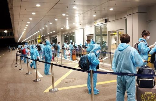 飞机抵达新山一国际机场后,所有旅客和机组人员都按规定接受健康检查并被送到隔离区集中隔离。