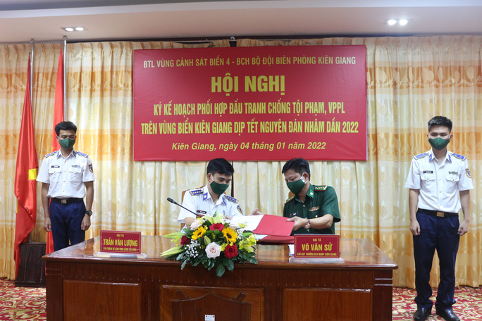 越南海上警察第四区司令部与坚江省边防部队司令部签署合作协议 |