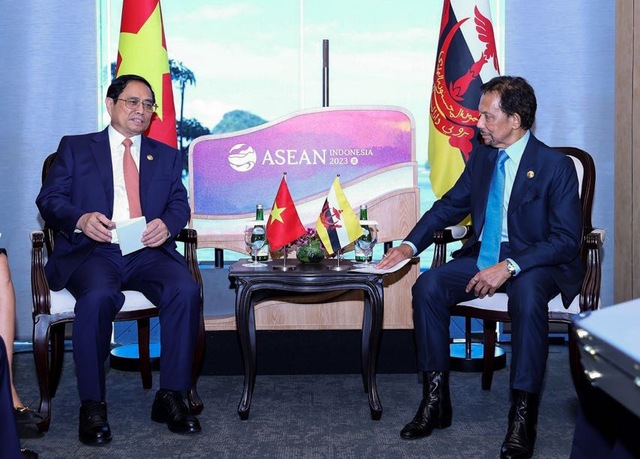 会见文莱苏丹哈桑纳尔时,越南和文莱两国领导人一致同意加强高层接触沟通,为落实2023至2027年越南-文莱全面伙伴关系行动计划提供前提。双方也同意通过扩大以石油、化学品、清真产品和旅游、民间交流等4个领域为支柱的双方各个富有潜力的领域合作范围,促进双边贸易朝着多样化且平衡的方向发展。苏丹哈桑纳尔表示,两国合作潜力仍然巨大,特别是经贸、投资、农业、水产、能源、教育、防务等领域。