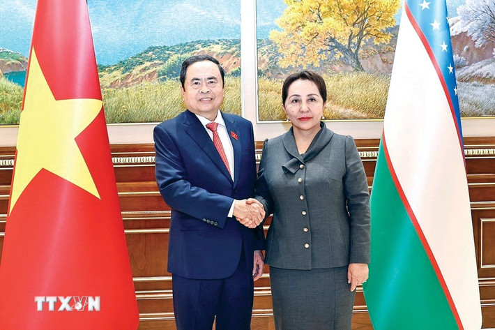 访问乌兹别克斯坦期间,越南国会主席陈青敏4月5日下午与乌兹别克斯坦参议院主席坦齐拉·纳尔巴耶娃举行会谈。