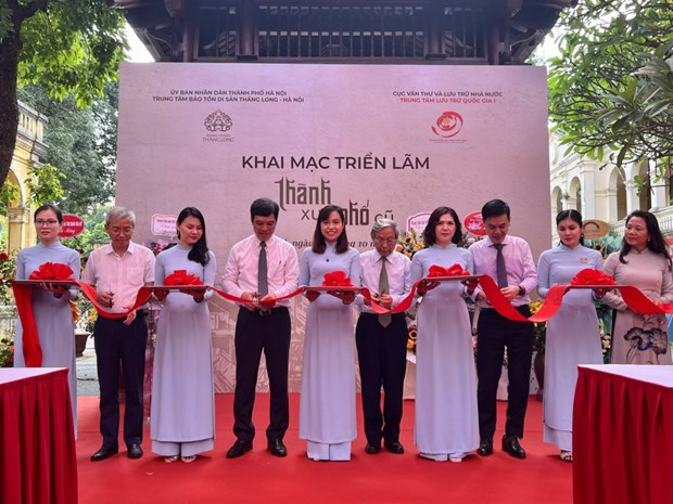 值此首都河内解放69周年, 10月6日,河内升龙遗产保护中心与越南第一国家档案馆在升龙遗迹区联合举行“古城老街”展。