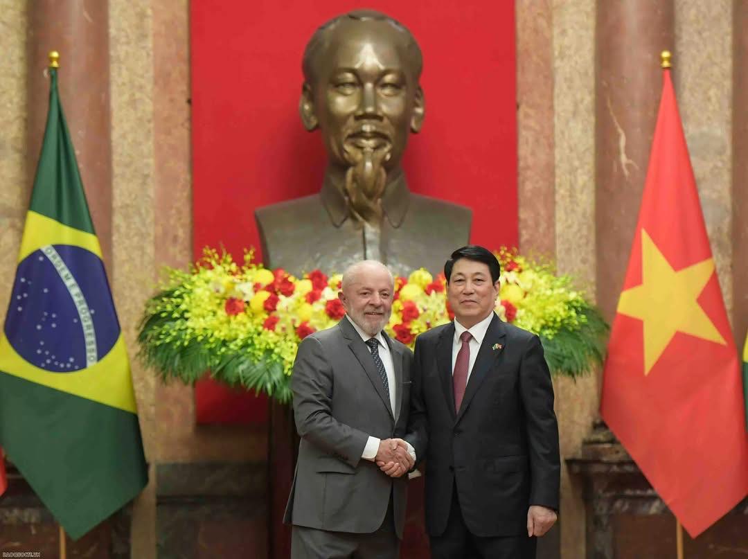 (VOVWORLD) - 应越南社会主义共和国主席梁强邀请,巴西联邦共和国总统路易斯·伊纳西奥·卢拉·达席尔瓦于2025年3月27日至29日对越南进行国事访问。3月28日上午,越南国家主席梁强在主席府为卢拉总统举行隆重欢迎仪式。