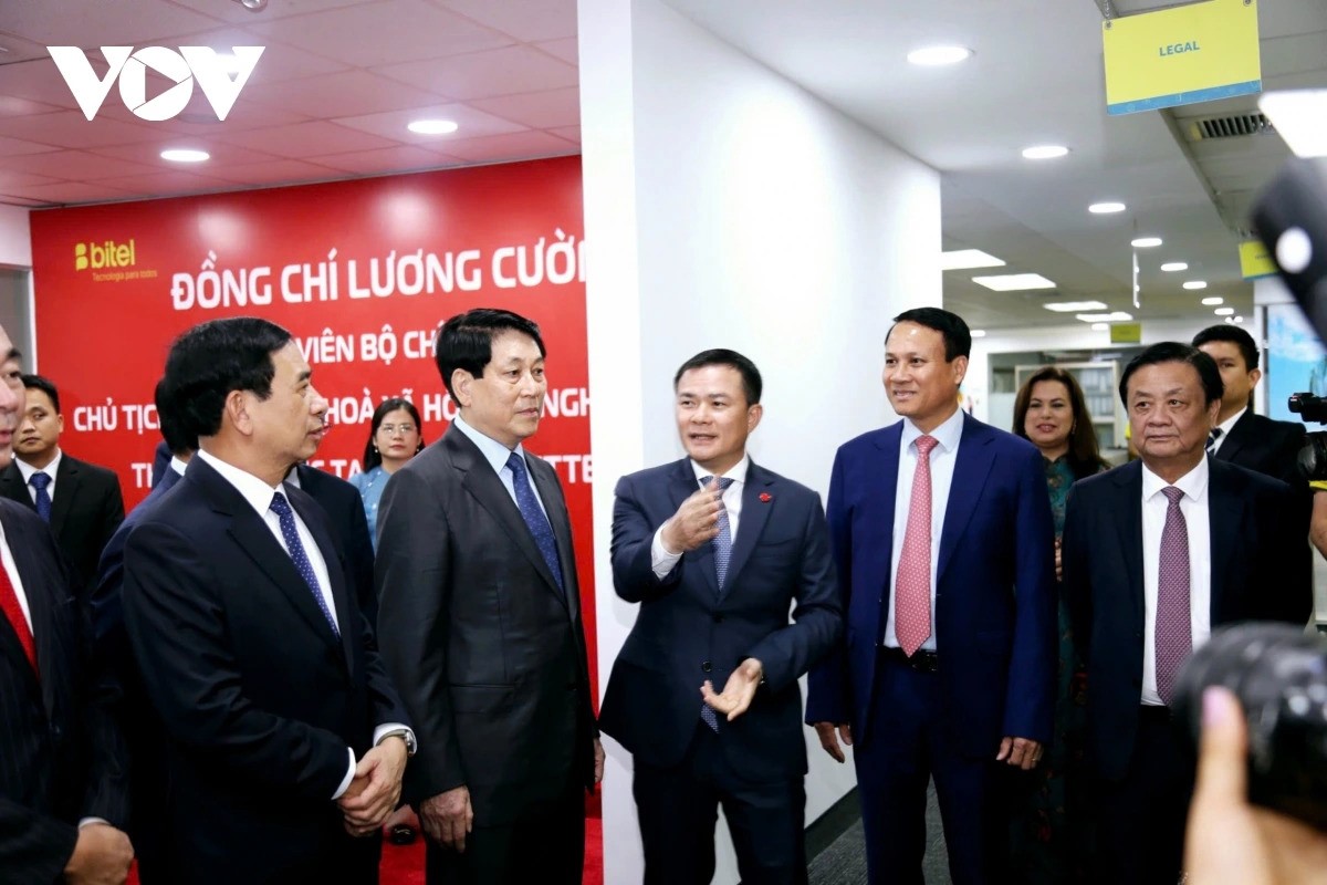 越通社消息,11月12日下午,正访问秘鲁的越南国家主席梁强一行造访了由越南军队电信工业集团(Viettel)在秘鲁成立的移动服务供应公司(Bitel)。Bitel公司总经理范英德向梁强汇报了公司运营情况。Bitel公司成立于2011年,于2014年正式投入运营,由Viettel独资。
