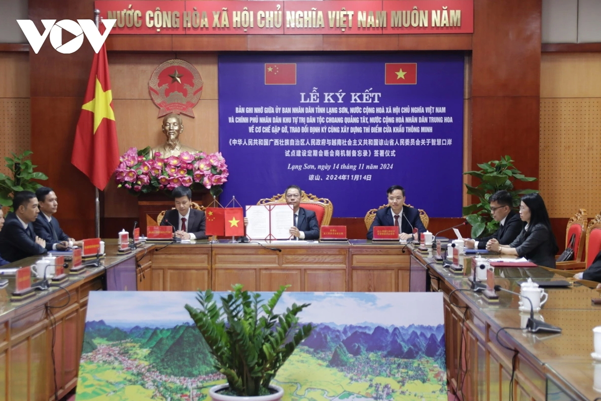 (VOVWORLD) - 11月14日下午,越南谅山省人民委员会与中国广西壮族自治区人民政府联合举行智慧口岸试点建设定期会晤会商机制备忘录视频签署仪式。