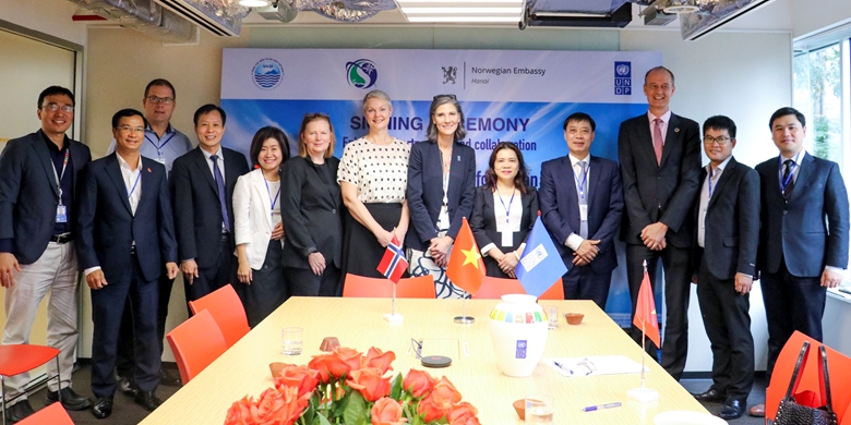 (VOVWORLD) - 联合国开发计划署(UNDP)、挪威驻越南大使馆11月23日在河内签署帮助越南制定海洋空间国家规划,促进海洋可持续发展并应对气候变化的合作协议。