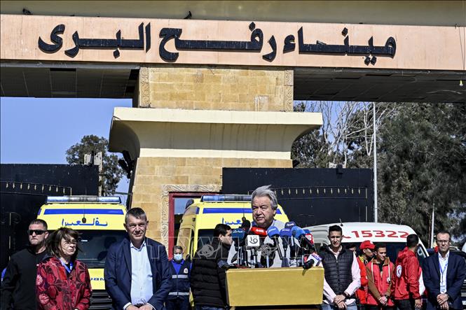 (VOVWORLD) - 古特雷斯在开罗在与埃及外交部长萨梅赫·舒克里举行的联合新闻发布会上,呼吁“立即实行人道主义停火,以减少在加沙地带挣扎求生的巴勒斯坦人的数量”。