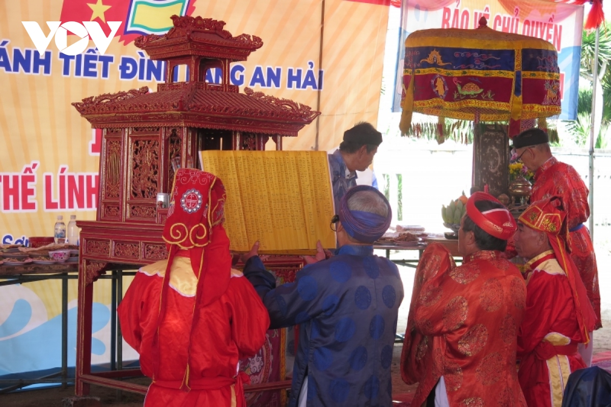 李山岛县安海村村亭礼仪部主任裴文景说:“每年农历二月,安海村都会举行黄沙戍边军犒军仪式,以缅怀先人,同时祈愿远赴黄沙和长沙渔场捕鱼、为维护国家主权做出贡献的渔民都渔获满仓、平安归来。”