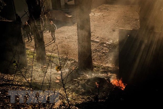 基辅一场爆炸事件现场。图片来源:AFP、VNA。 |