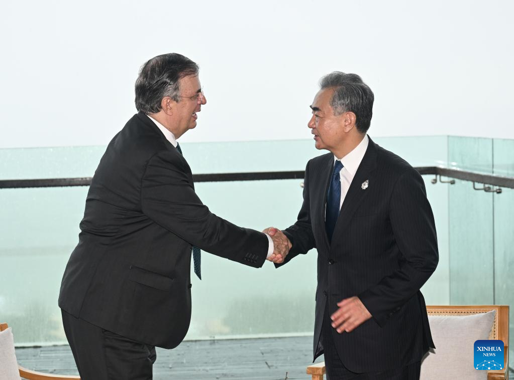 墨西哥外长马塞洛·埃布拉德(左)与中国外长王毅 |