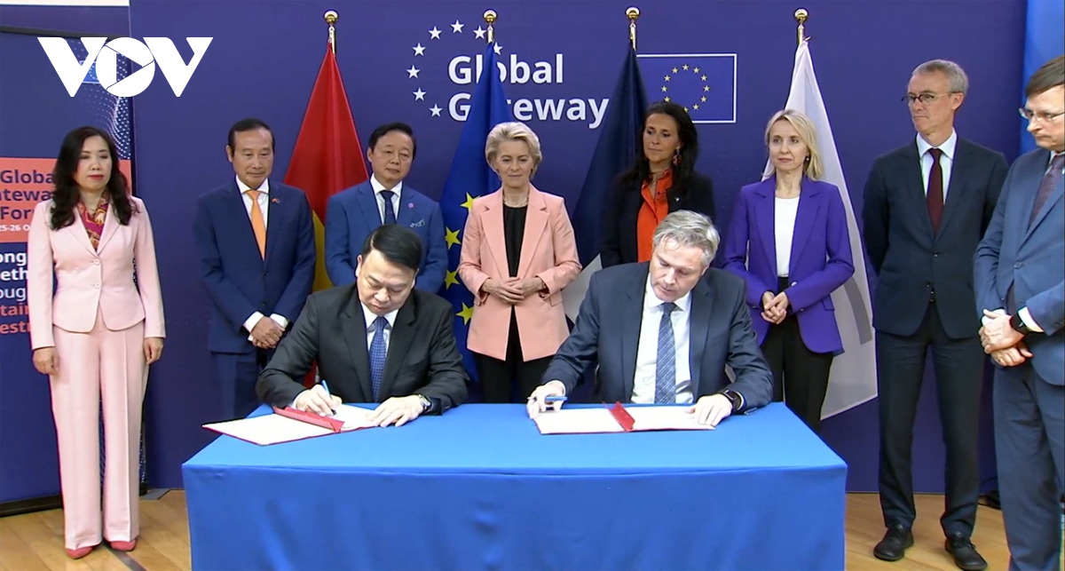 会见时,冯德莱恩指出,越南是欧委会开展地区合作战略计划倡议的重要合作伙伴,她对双方在应对气候变化,公正能源转型方面的紧密合作表示欢迎,承诺在实施“全球门户”战略过程中优先与越南开展可再生能源,数字化转型,绿色增长等领域的合作。