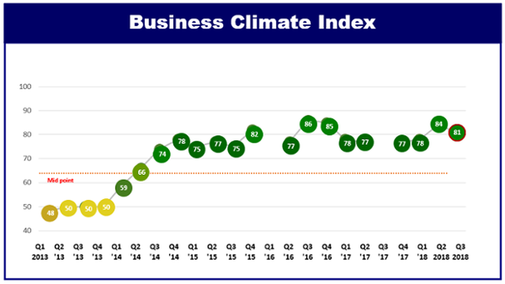 据此,第三季度的营商环境指数为81分,是2016年以来第二高水平。50%以上的受访企业表示,将在第四季度增加招聘数量。此外,50%以上的受访企业表示将在第四季度增加投资。