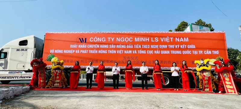 芹苴市人民委员会举行首批出口中国榴莲发运仪式。这是芹苴市按照越南农业与农村发展部与中国海关总署签署的议定书对中国出口的首批榴莲。