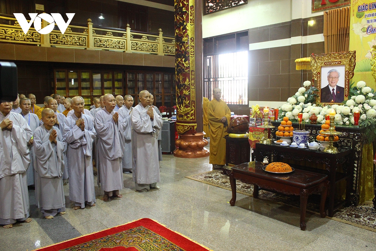永隆省佛教会治事委员会举行阮富仲总书记悼念仪式。 |