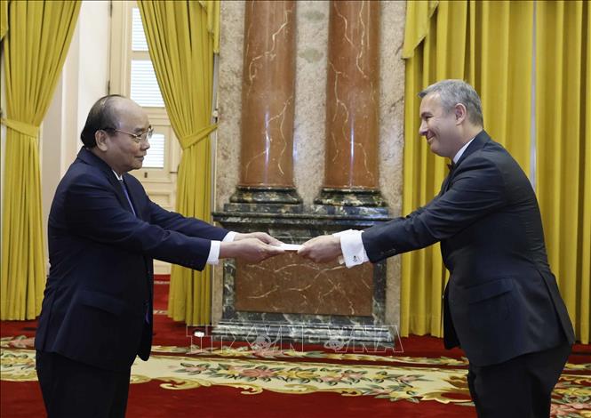 会见比利时驻越特命全权大使卡尔·亨德里克·玛格丽塔·范登·博什(Karl Hendrik Margareta Van Den Bossche)时,阮春福建议比利时为越南农产品进军该国市场并输往欧洲零售系统创造便利条件。阮春福并希望比利时议会及早批准《越欧投资保护协定》,促进欧盟委员会尽早取消对越南水产品的“黄牌警告”。2023年两国将纪念建交50周年,因此阮春福建议博什大使与外交部和有关机关配合开展多项经济、文化、教育和民间交往等活动。(完)