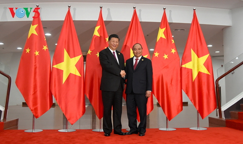 会见时,阮春福表示,越南坚持独立、自主、和平、合作与发展的外交路线,促进国际关系全方位和多样化,越南党和政府重视与中国的全面战略合作伙伴关系。阮春福建议习近平关心、指导,促进越中传统友谊、全面合作关系深入务实发展,造福两国人民。