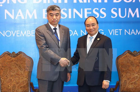 (VOVWORLD) -越南政府总理阮春福7日在岘港市举行的越南商务峰会期间会见前来出席峰会的由中国国际贸易促进委员会副会长陈洲率领的中国企业代表团。