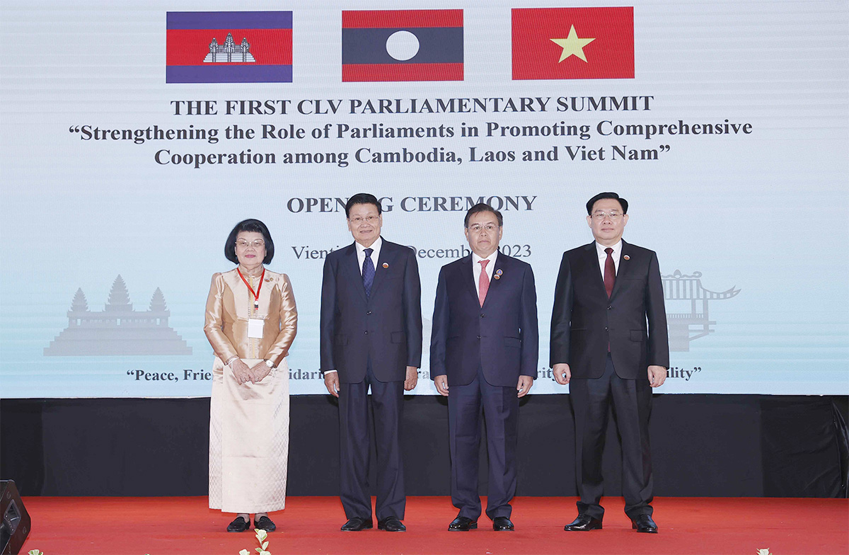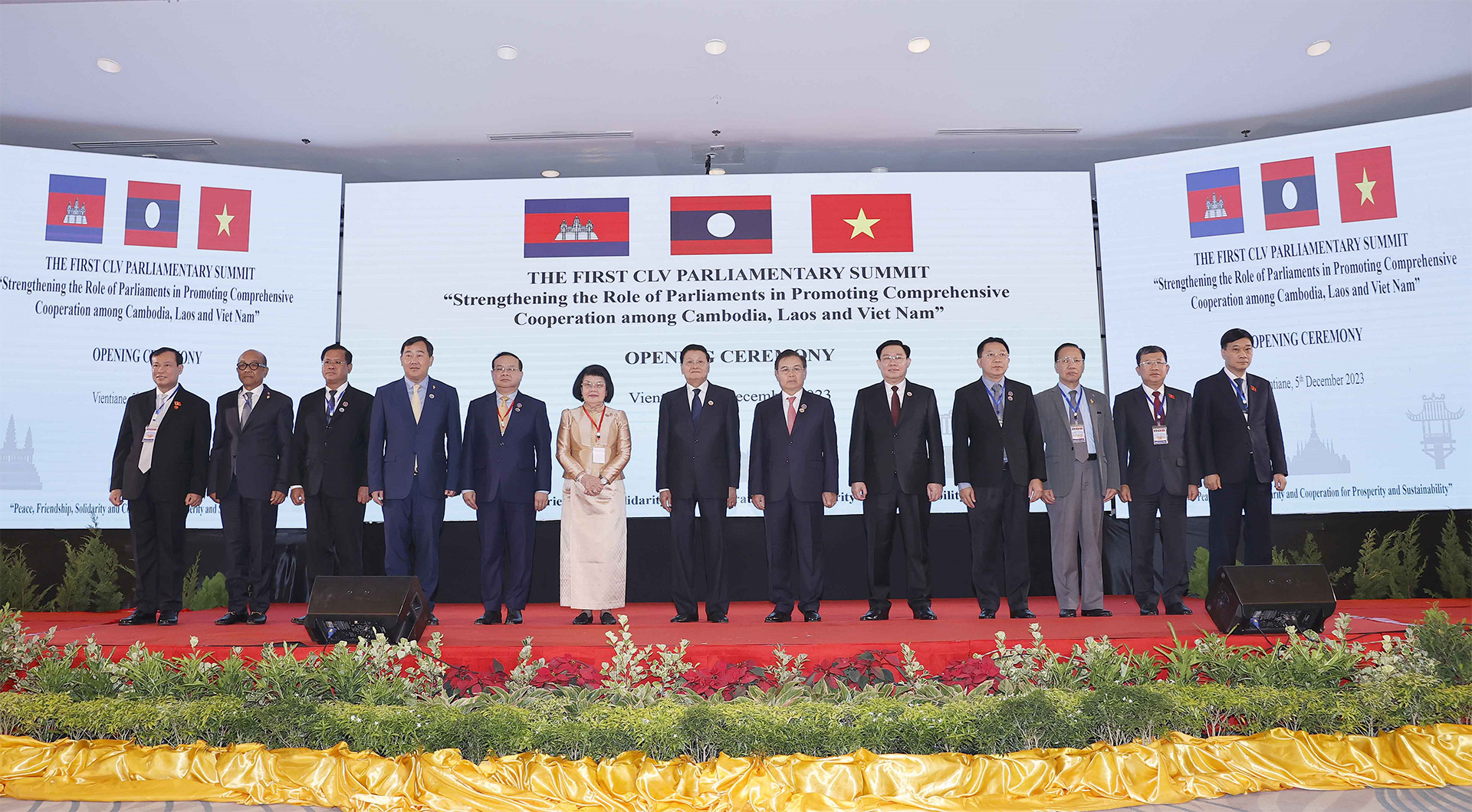 首届越老柬三国国会高层会议5日上午在老挝首都万象举行。三国国会代表,各部门、地方和国际组织代表等350多人参加会议。越南国会主席王庭惠率团参加会议。