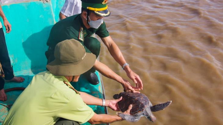 (VOVWORLD) - 朔庄省边防部队中平边防站2月9日与当地政府配合,组织放归3只海龟。