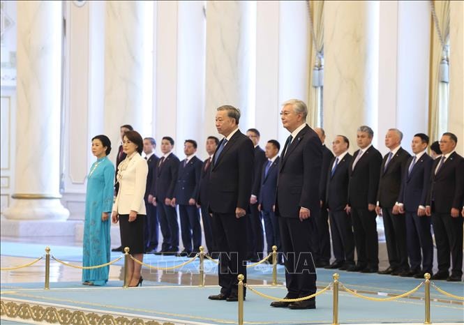 (VOVWORLD) -当地时间5月6日上午,苏林总书记出席哈萨克斯坦总统托卡耶夫举行的欢迎仪式。