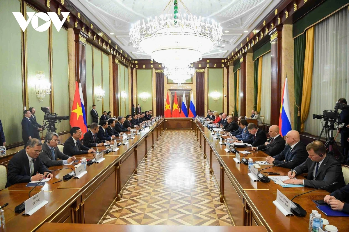 两位领导人还讨论了增进政治互信,扩大双方能源、贸易投资、国防工业、交通运输、高科技、人工智能、数字经济、医疗卫生、教育培训、文化、旅游、地方和民间交流等领域合作的措施。双方同意继续加强两国各部门、地方和企业之间的合作,消除贸易、投资壁垒,大力实施能源、工业、高科技农业、物流和数字化转型等领域的合作项目。米舒斯京强调,俄罗斯政府将与越南政府保持配合,携手落实两国高层领导人达成的各项决定。